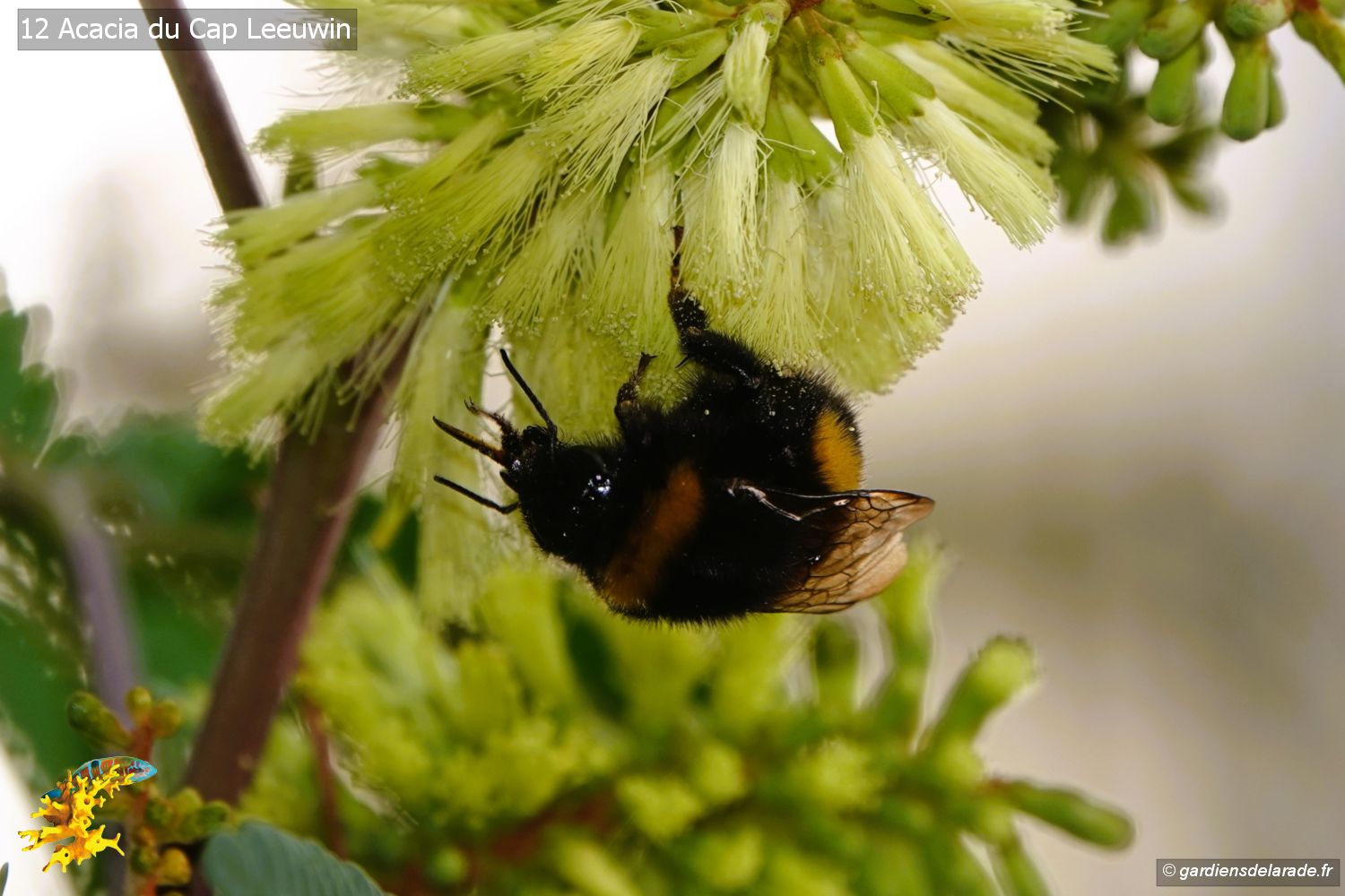 Un Albizia australien (Albizia lophanta), connu aussi sous le nom d’Acacia du Cap Leeuwin d’où il est originaire, est en fleur sur la presqu’ile. De croissance très rapide, il atteint 3 à 4 mètres de haut et offre une longue floraison parfumée de décembre à avril sous la forme de cimes, inflorescences hermaphrodites axillaires, cylindriques en forme d'écouvillons jaunes de 6 à 8 cm de long. Ces arbres ne vivent pas très longtemps mais c’est une espèce qui peut devenir invasive lorsque les conditions de croissance lui sont favorables. De grands individus sont visibles au fond du cimetière « les Pins » en haut de l’avenue Général Koenig où ils se reproduisent depuis des années.
