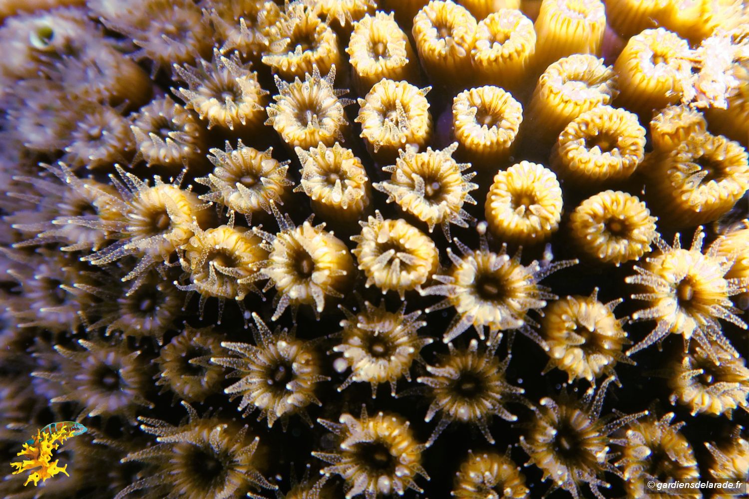 La bouche de chaque polype est entourée de tentacules qui peuvent se rétracter et qui capturent des organismes planctoniques. Les tissus des polypes accueillent des algues unicellulaires symbiotiques, les zooxanthelles de la famille des dinophycées qui diffusent en retour des substances nutritives.