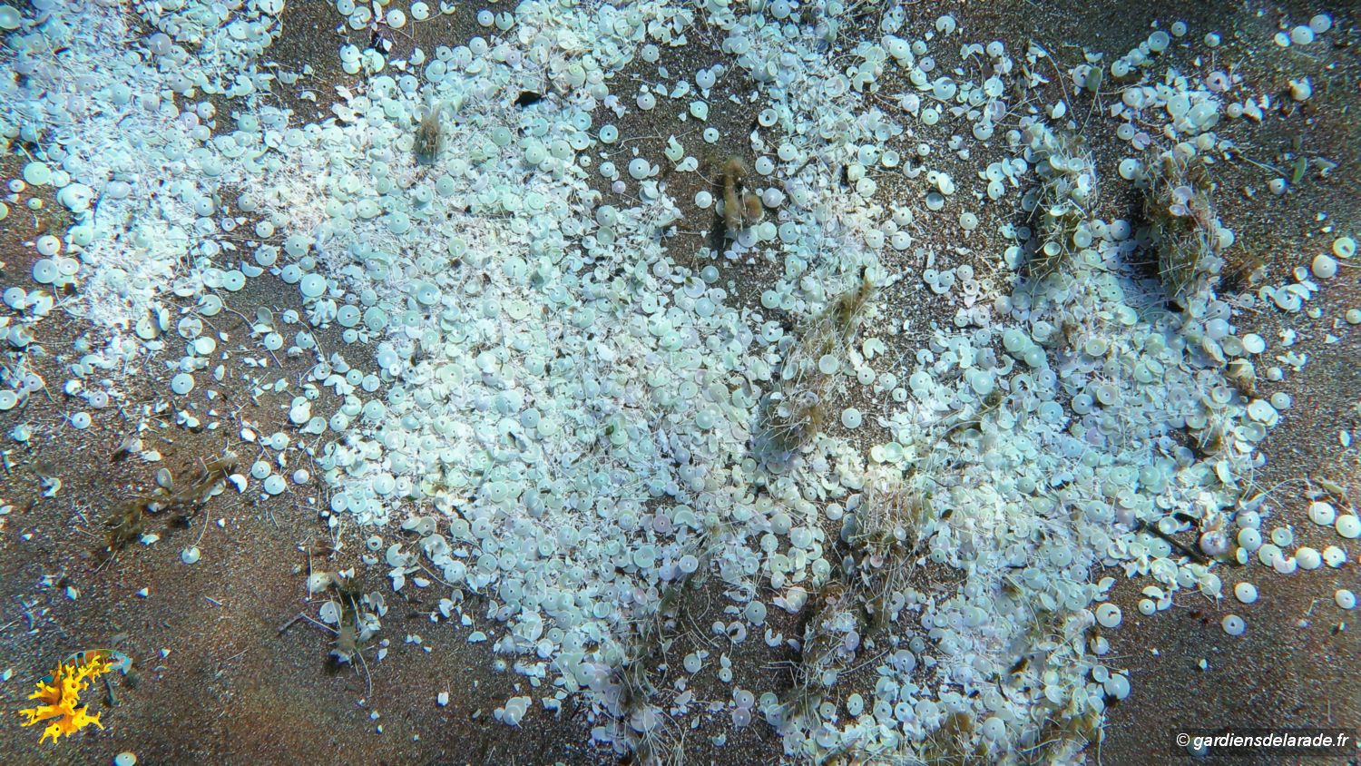 Aujourd’hui, les acétabulaires qui se sont reproduites commencent à perdre disques et hampes qui rejoignent les fonds pour se mélanger aux débris d’algues et autres, se fragmenter et finalement s’incorporer aux sédiments.