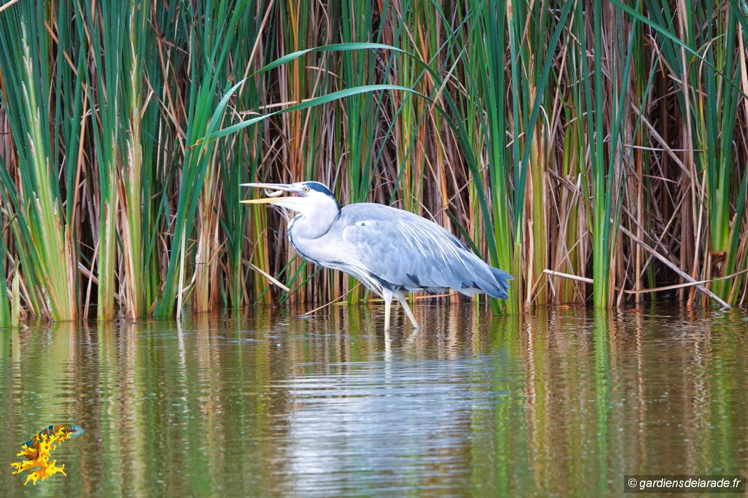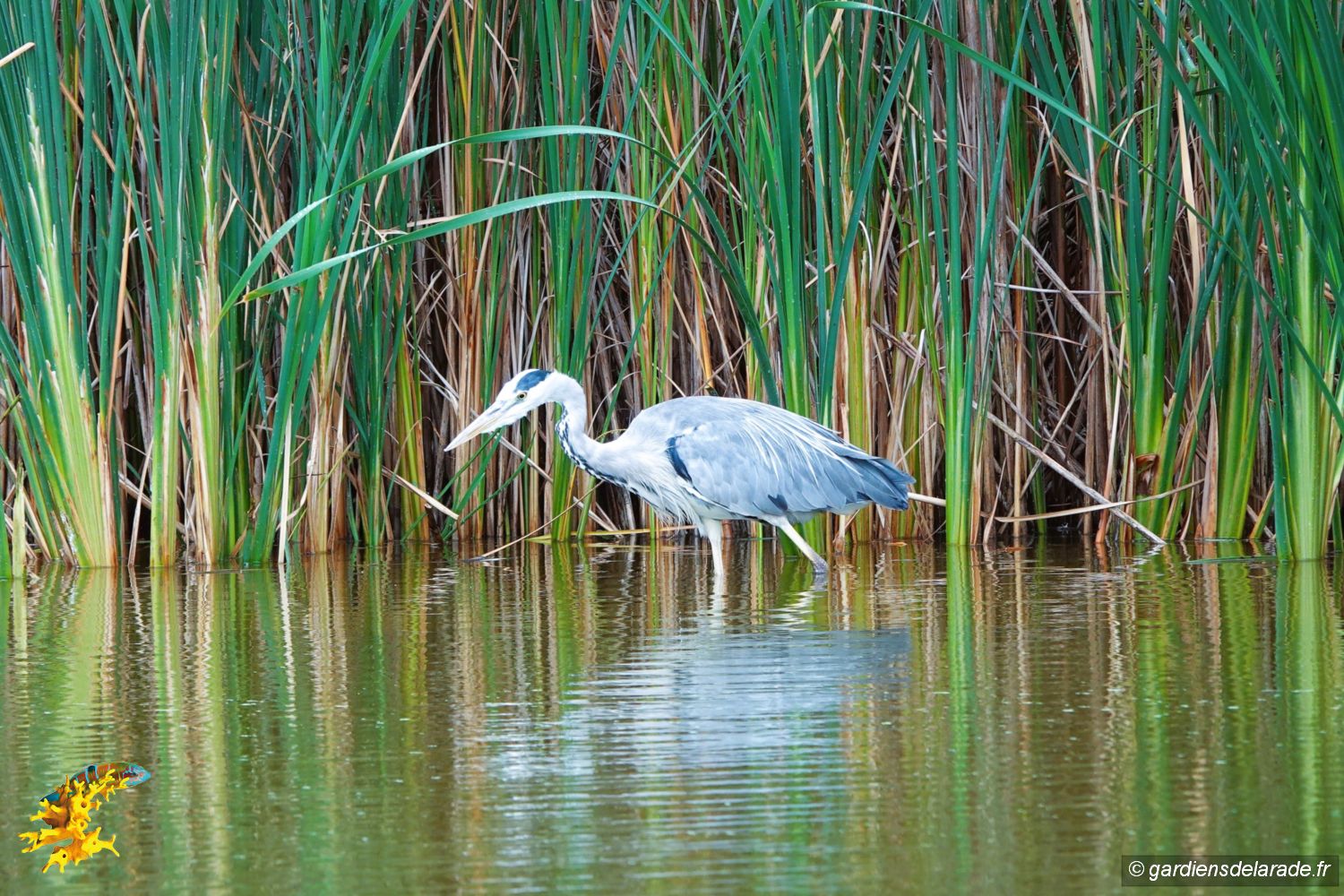 Le héron cendré (Ardea cinerea) est commun dans notre région et il est souvent observé durant la journée se reposant ou chassant sur les berges des points d’eau : mares et lacs artificiels, étangs, marais.