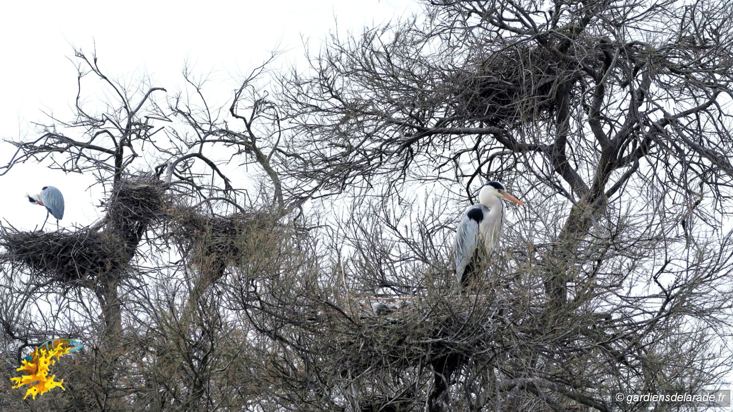 Habituellement solitaires, lors de la période de reproduction, entre février à juillet, les hérons se regroupent en colonies et construisent de grand nid au sommet des arbres, en bordure des lacs et des rivières.