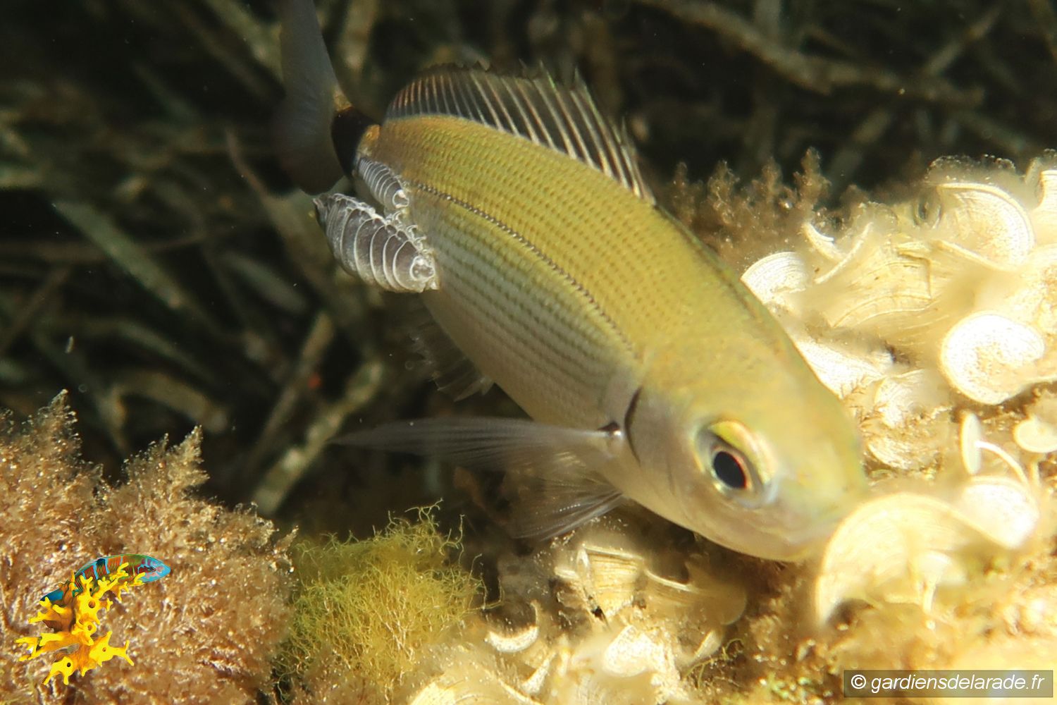 La nuit nombre de poissons s’immobilisent pour dormir, c’est l’occasion de les approcher de très près et d’observer un crustacé qui les parasite, l’Anilocre.