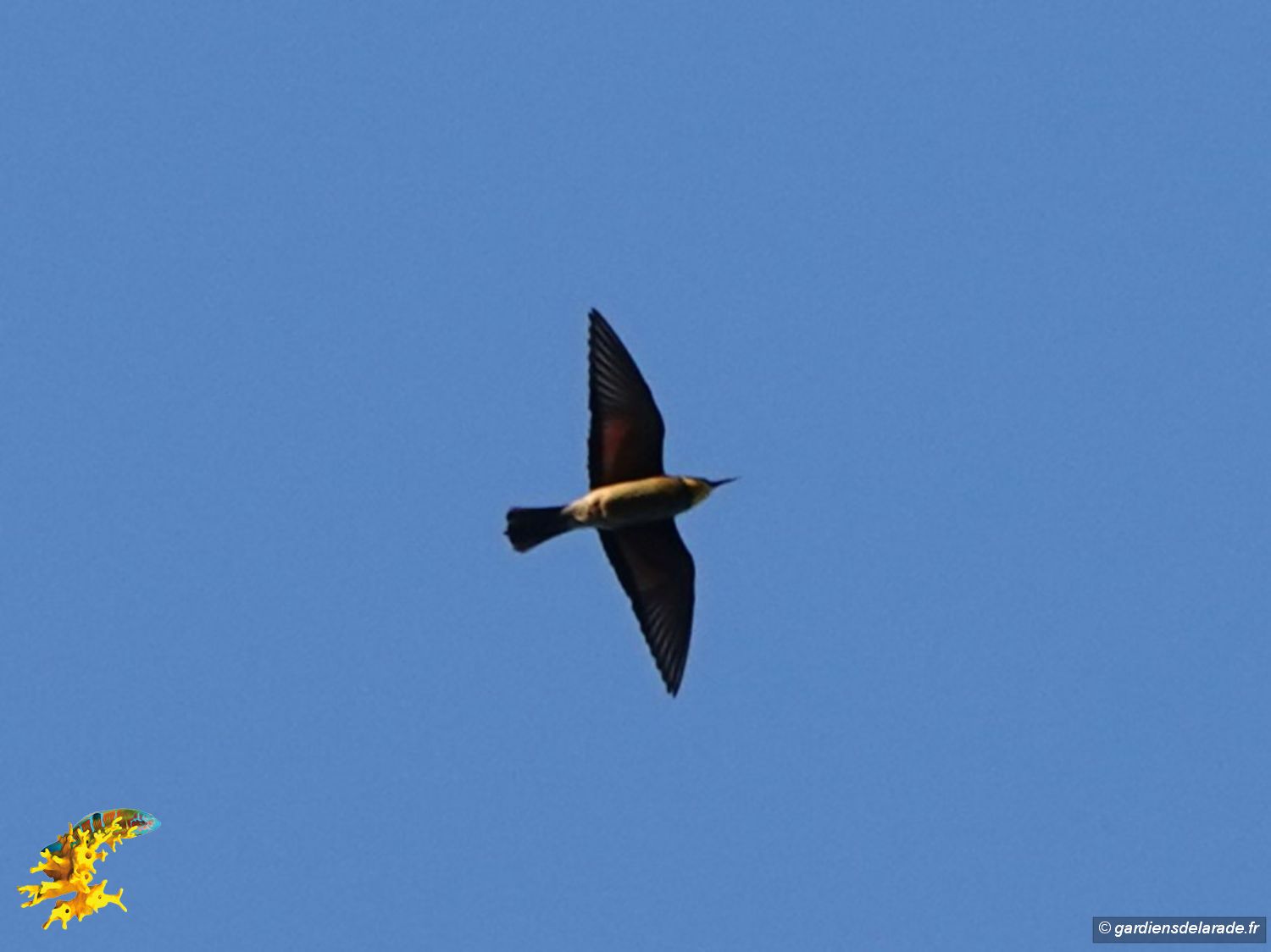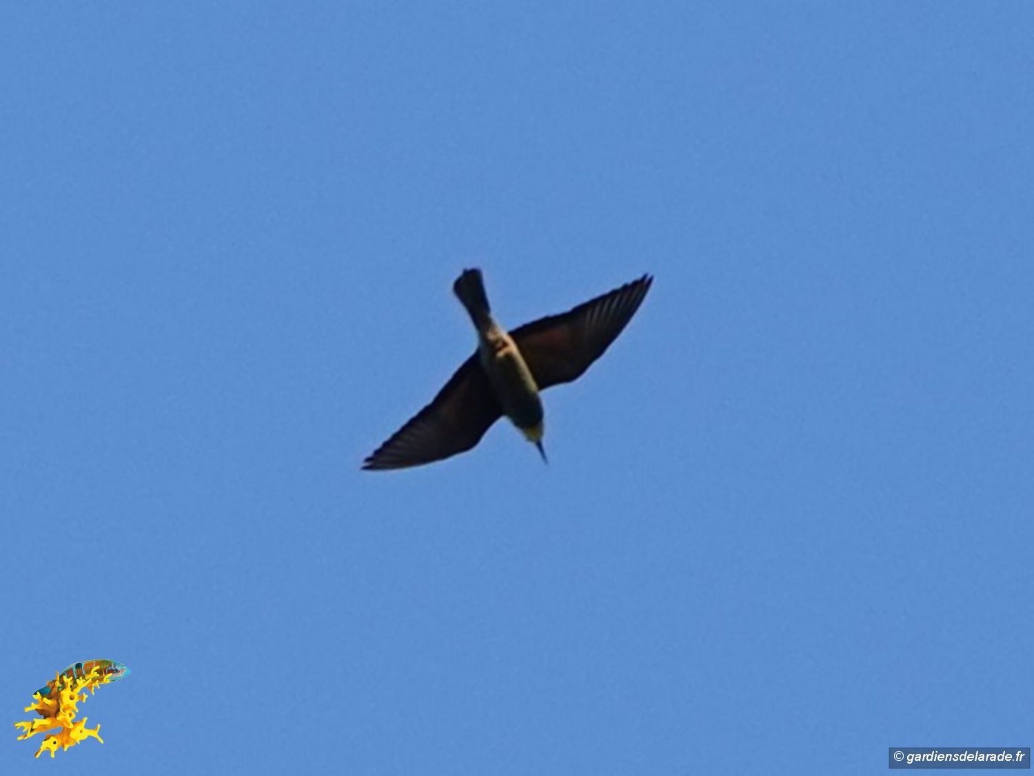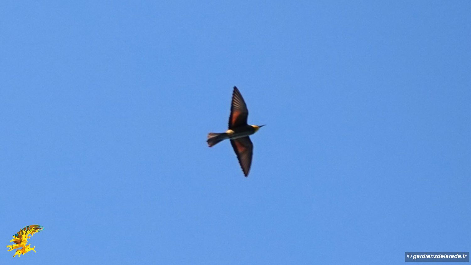 Sur leur route migratoire, ils passent par la presqu’ile et sont visibles en groupe dans le ciel en ce moment, bien reconnaissables à leur couleur vives : la gorge est jaune bordé de noir, le dos, la calotte et le haut des ailes sont brun-roux, le bec noir est légèrement incurvé. Immanquablement vous les reconnaitrez à leur cri de vol très caractéristique : ici